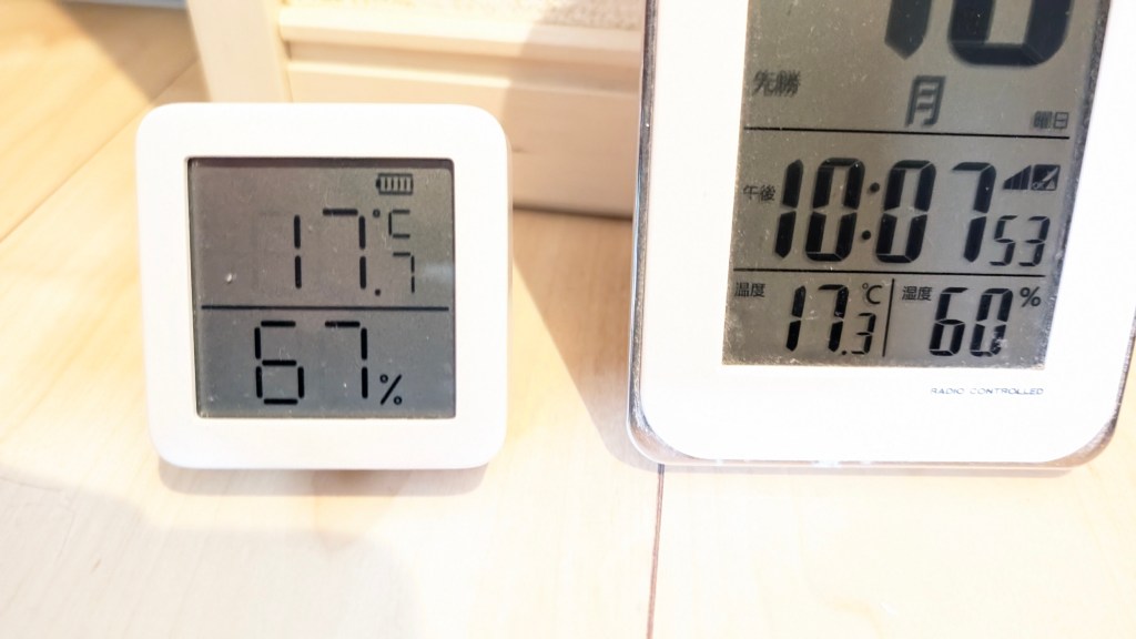 - 高精度な温湿度センサー&照度センサーを内蔵:ハブ2本体に温度、湿度、そして新たに照度(明るさ)センサーが搭載されました。これにより、部屋の環境をより詳細に把握し、それをトリガーとした自動操作が可能になります。例えば、「室温が28度を超えたら冷房をONにする」「部屋が暗くなったら照明を点灯する」といった、より賢い自動化が実現します。ディスプレイも搭載され、現在の温湿度をすぐに確認できるのも便利です。